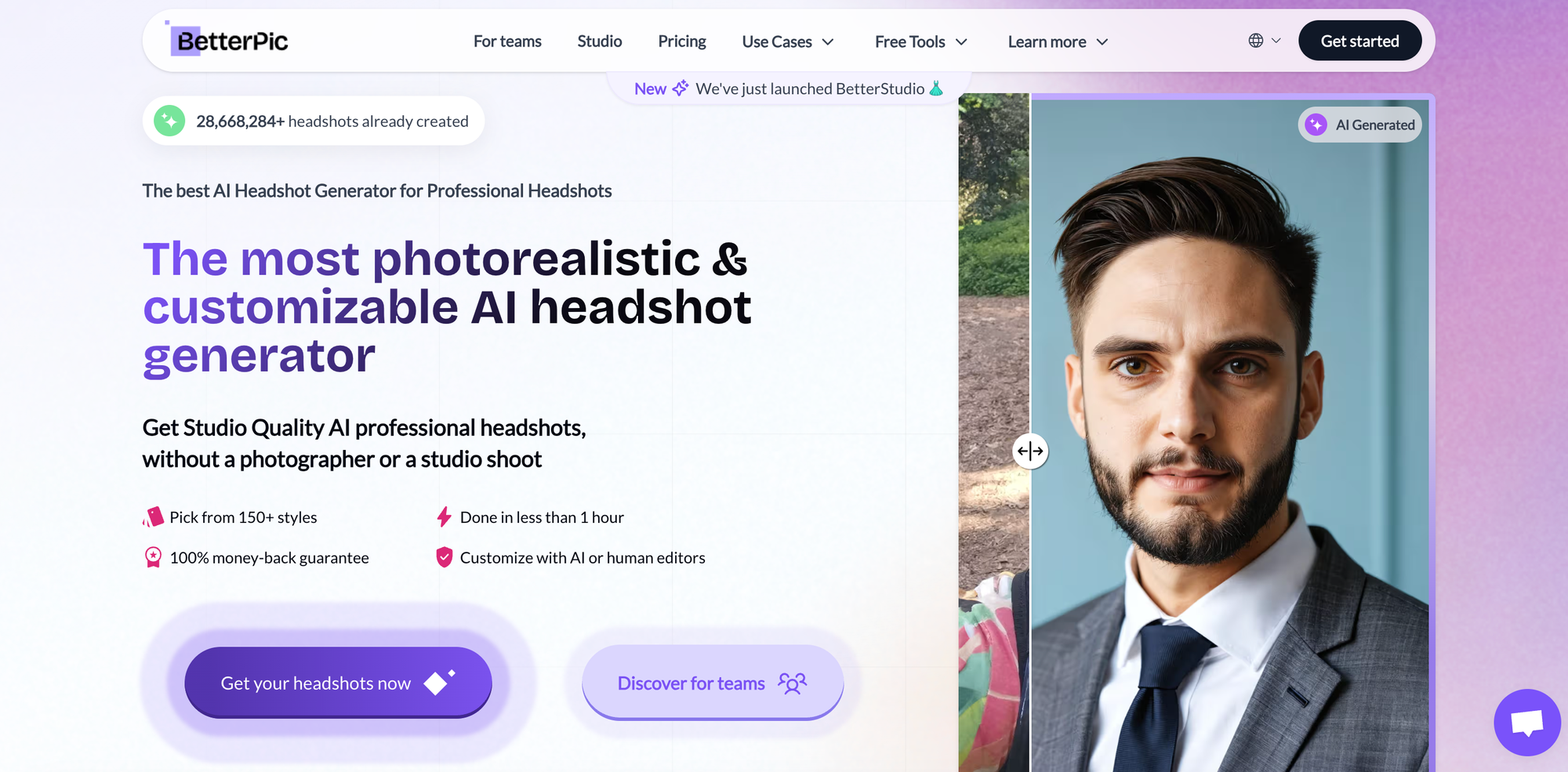 BetterPic is an AI-powered headshot generator that turns your selfies into professional 4K portraits in less than an hour. With over 150 styles, custom backgrounds, and outfit options, it's perfect for LinkedIn, resumes, and team pages. BetterPic offers paid plans only and is trusted by thousands of users for fast, studio-quality results without the need for a photographer.