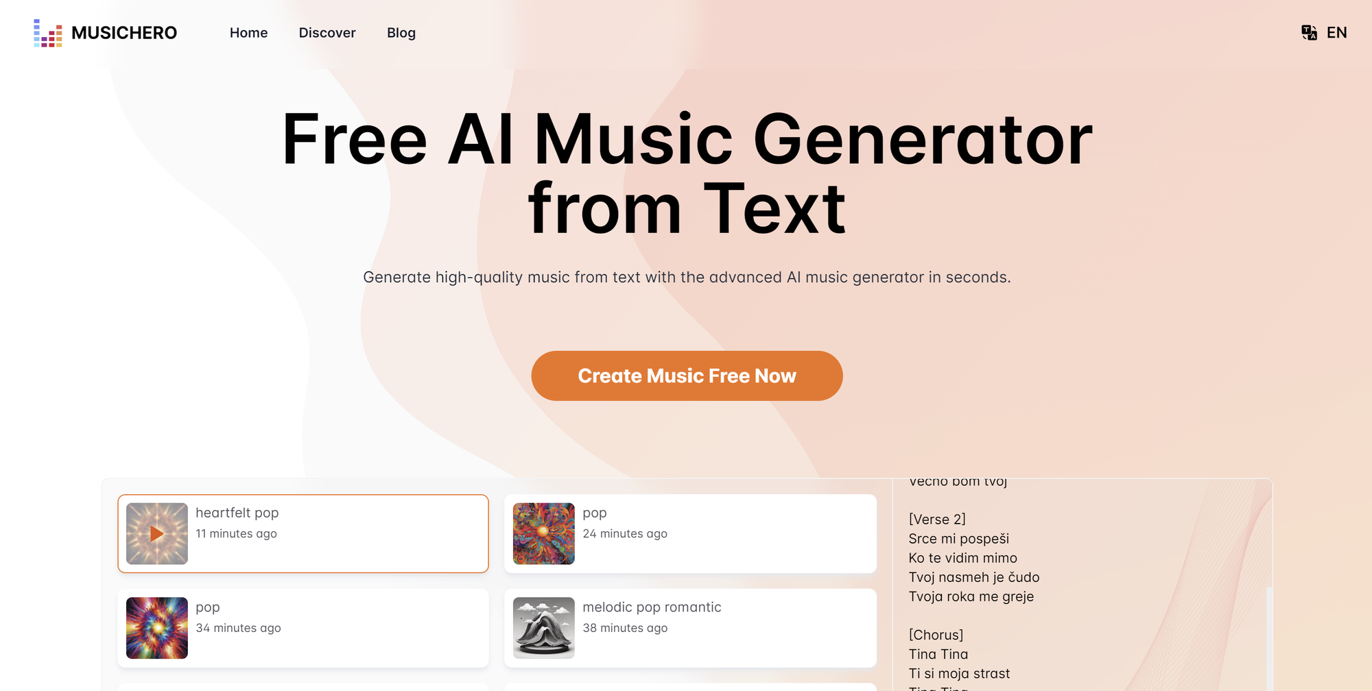 MusicHero AI is the ultimate tool for musicians and producers seeking to unleash their creativity and streamline their music production process. This platform uses advanced AI to help you compose, arrange, and master tracks effortlessly, catering to all genres and styles. Whether you're a budding artist or an experienced producer, MusicHero AI provides the resources you need to innovate and enhance your music, making it easier than ever to achieve professional-quality sound. Start creating with MusicHero AI at MusicHero.