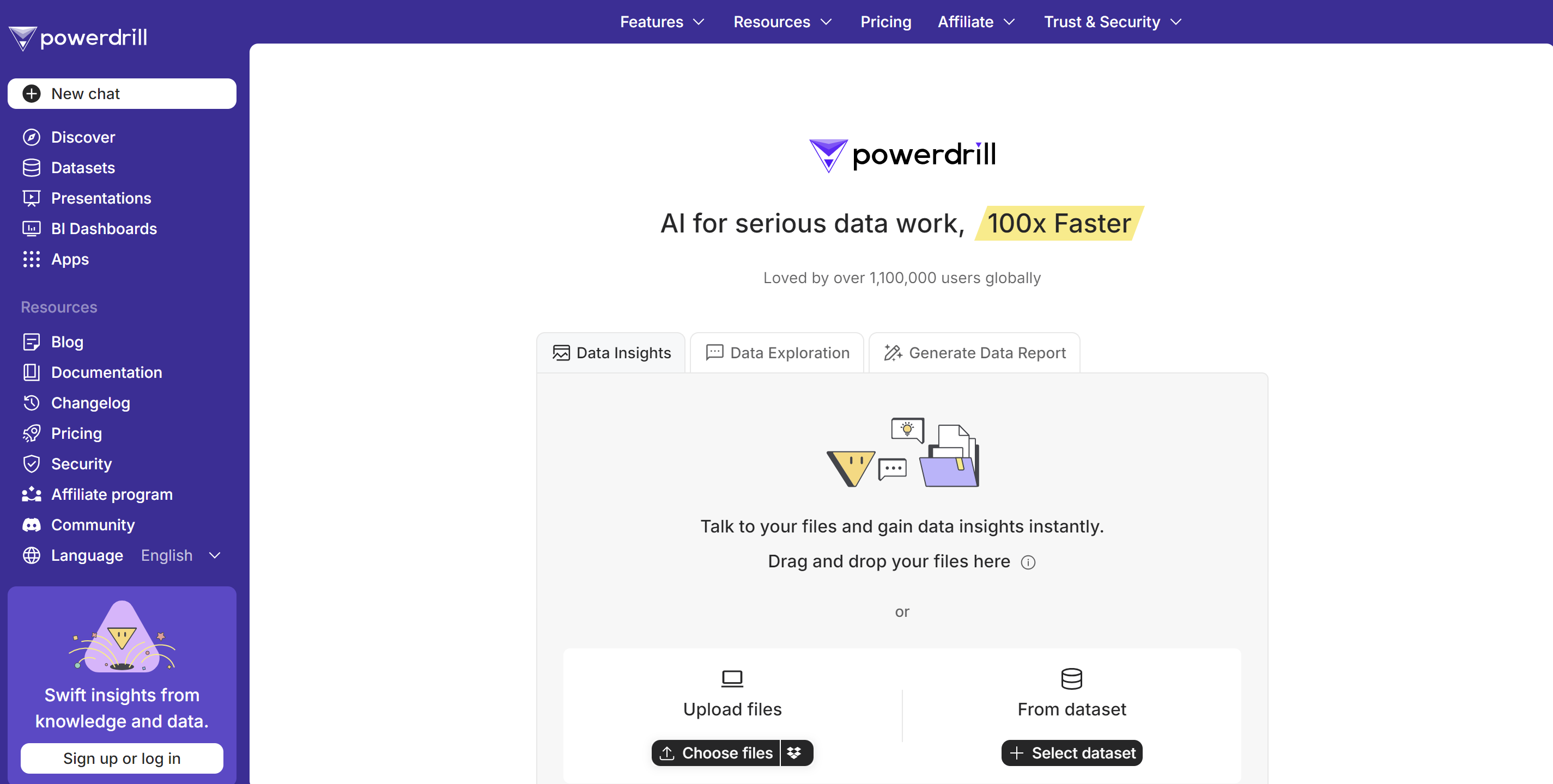 Powerdrill harnesses AI to enhance data interaction, offering an intuitive platform for personal and enterprise datasets. It simplifies tasks from Q&A to complex analysis, allowing users to engage with data through natural language. This service provides insightful, quick access to data-driven decisions, enhancing productivity and knowledge discovery. For more details, visit Powerdrill.