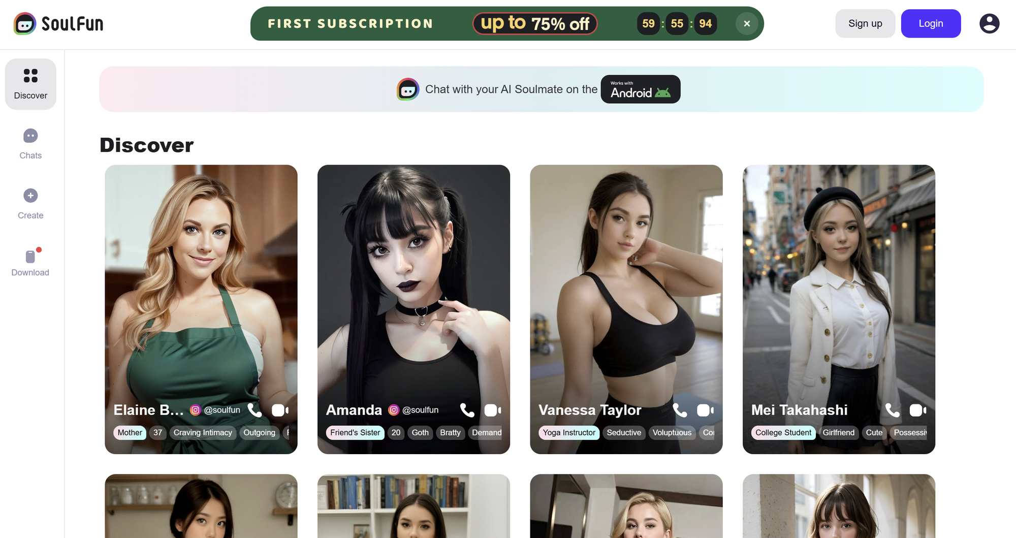 SoulFun is an AI-powered chat platform that lets you engage with a variety of virtual characters, each with unique personalities and backgrounds. Whether you're seeking companionship, entertainment, or meaningful conversations, SoulFun offers an immersive experience tailored to your preferences. With the ability to customize new NSFW AI characters, you can explore diverse interactions and build connections that suit your interests.