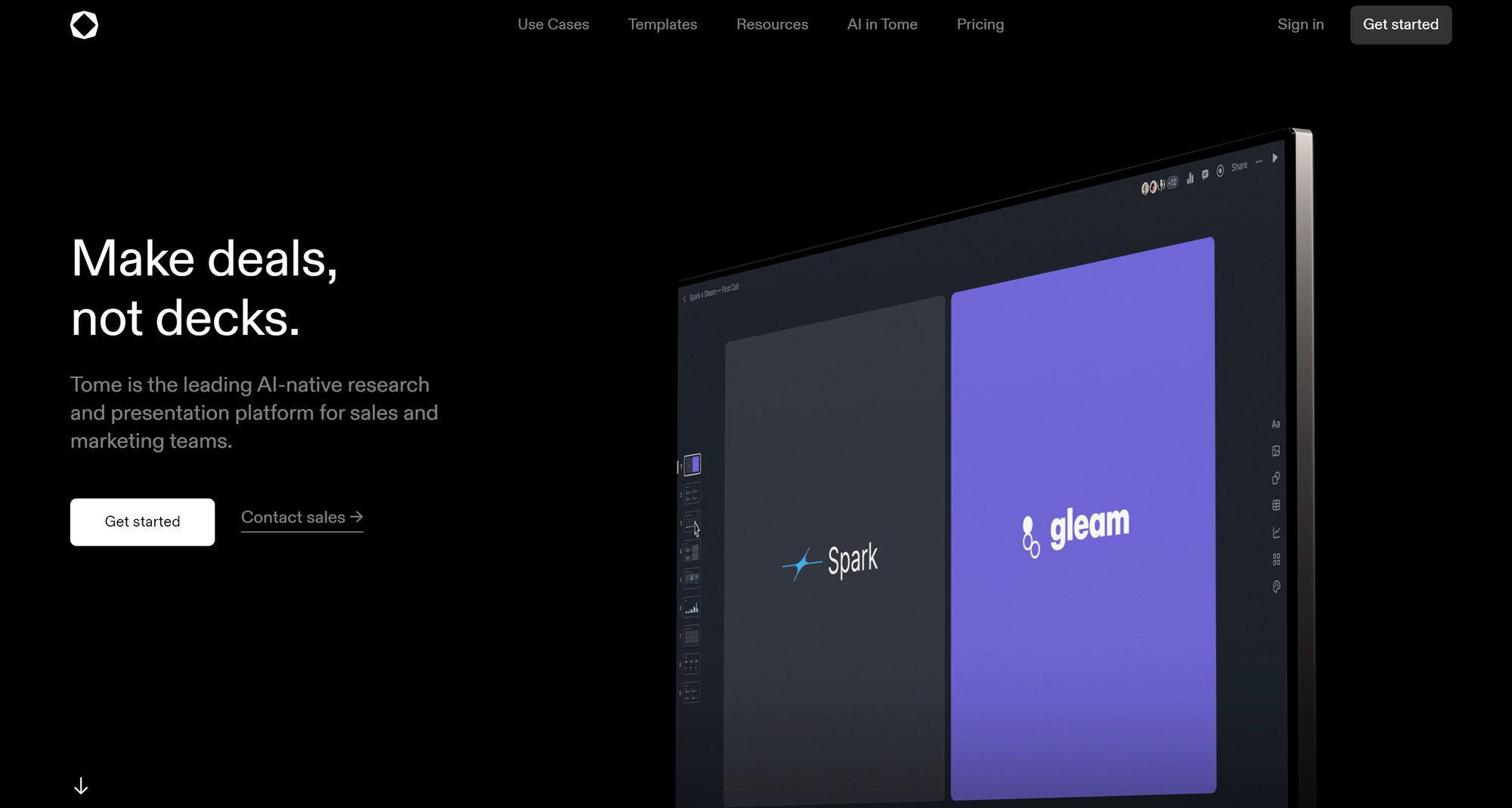 Tome enhances business presentations with its AI-powered tools that streamline the creation of engaging, effective slides. Ideal for sales and marketing professionals, Tome integrates AI to automate research and personalize presentations, making communication with clients clear and impactful. With features like instant personalization, embedded interactive media, and detailed engagement analytics, Tome transforms the way teams create and deliver presentations. Explore more at Tome.
